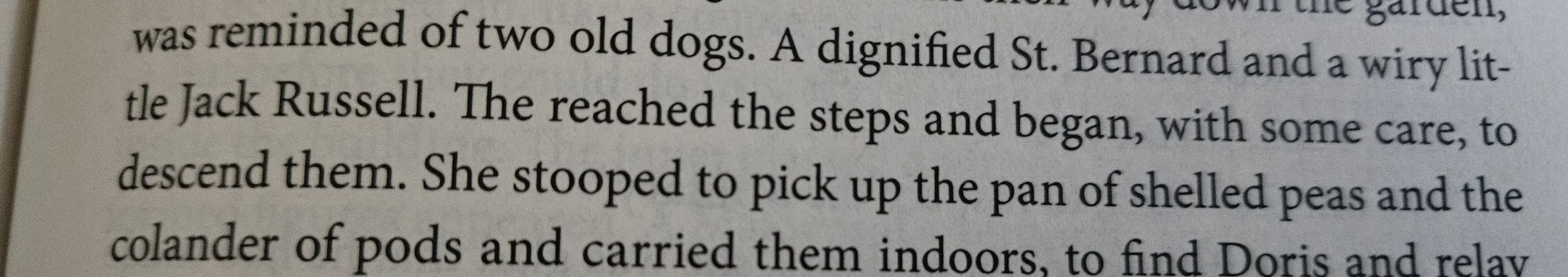 “Chunter” comes up again on page 241: “The wind was light, scented with thyme, and the only sounds the occasional bark of a dog, or the pleasant chuntering of a distant tractor.” I see no need for the comma after “dog.” I would have inserted “were” or a comma to show the omission of “were” after “sounds.”